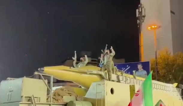 当地时间21日晚,“卡德尔”导弹出现在伊朗首都德黑兰的卡德尔广场上。在此前与美以的冲突中,伊朗多次发射该型号导弹打击以色列及地区内美军相关目标。伊朗伊斯兰革命卫队当晚还发布了此前“真实承诺4”第100波打击行动中的视频。