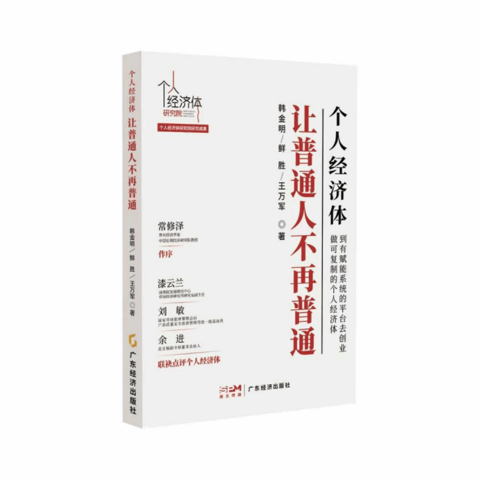 《个人经济体:让普通人不再普通》从数字生产力带来生产关系变革、社会生产关系带来社会结构变革的底层逻辑分析,揭示社会进入了“个体组织社会生产活动的时代”,这成为了OPC蓬勃发展的真正基础,甚至个人都可以成为经济体。国家发改委前副秘书长范恒山评价说,“个人经济体为创业者结构了巨大的时代红利,有利于改变社会的就业创业观念。”