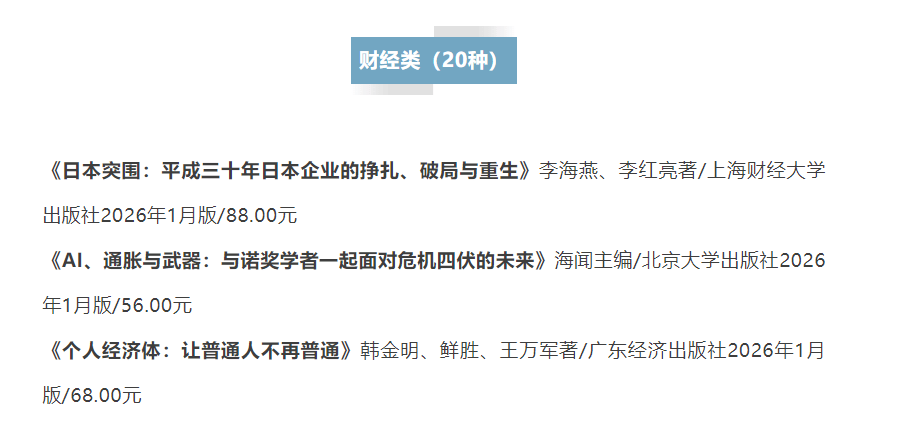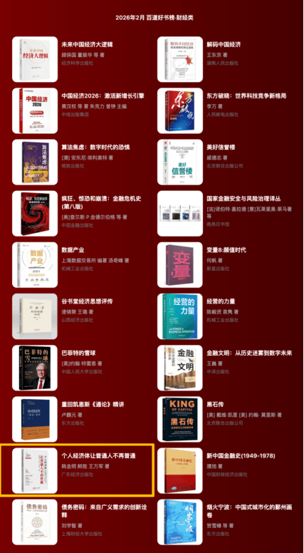《个人经济体:让普通人不再普通》入围2026年2月“百道好书榜”