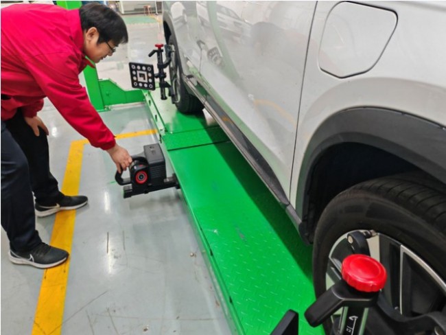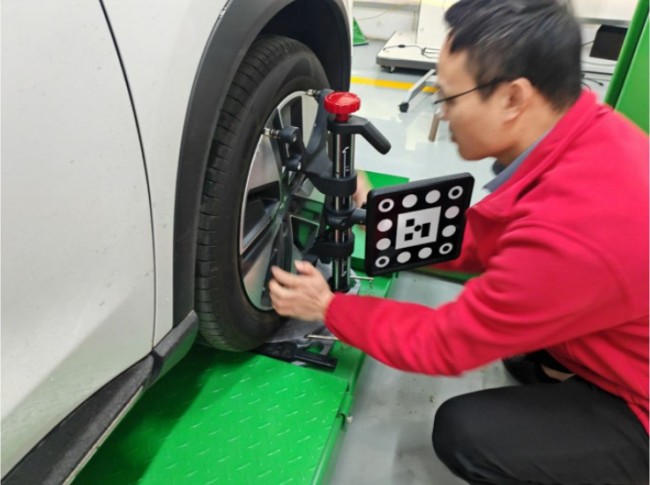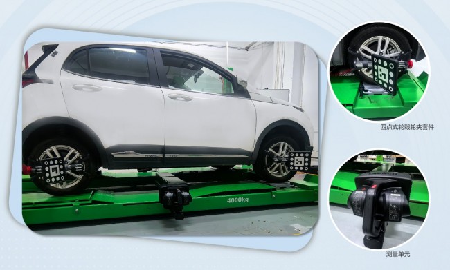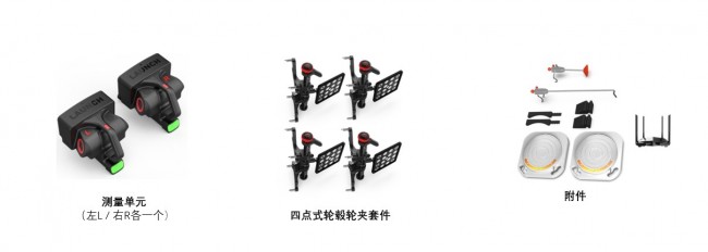 2.标靶定位:测量相机自动识别左前、右前、左后、右后四个轮夹标靶,精确获取标靶与测量单元之间的相对位置关系。
