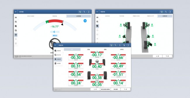 3.坐标建模:系统汇总以上数据,建立整车四轮坐标系,最终计算得出总前束、分前束、外倾角、主销后倾角、主销内倾角等关键定位参数。