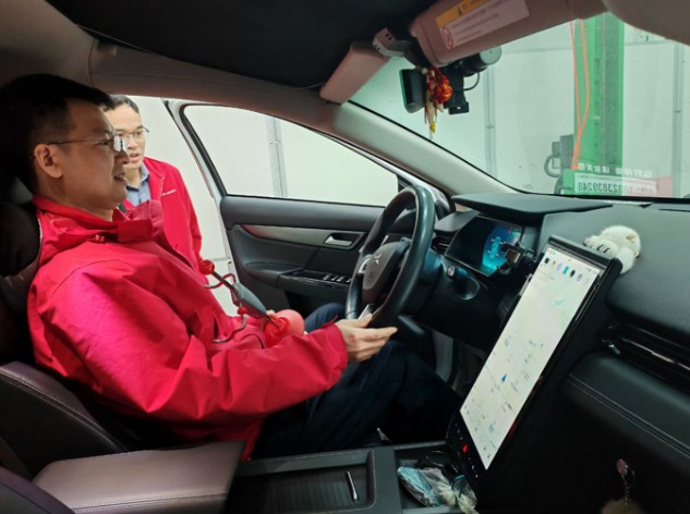 ③摆正方向盘并固定,即可开始链接元征X-431 PAD系列诊断设备使用。