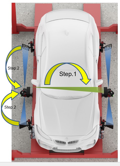 1.测量单元互看:左右测量单元通过相互相机获取彼此位置数据,有效消除举升机桥板高低不平及测量单元每次安装位置不一致带来的系统误差。