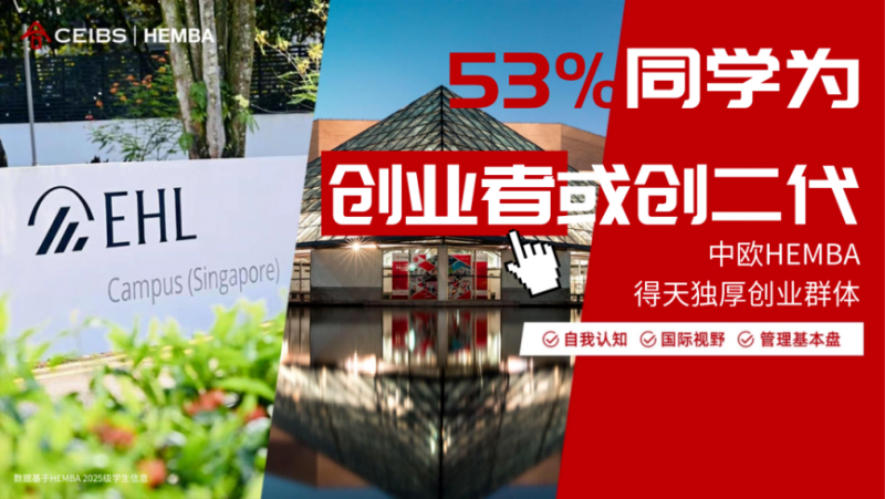 从权威的国际认证、卓越的双校师资团队到培养全球视野与出海实力的课程体系,“中欧HEMBA属于什么档次”这一问题的答案已清晰浮现。在中欧HEMBA,53%学生为创业者或家族企业接班人,选择中欧HEMBA,意味着将融入高质量、高层次的商业生态与校友网络,与顶尖教授、政商领袖深度交流汲取前沿洞察与管理智慧,在国际化中探索“以人为本”的商业实践,成功驾驭时代变革,引领企业行稳致远,走向基业长青。