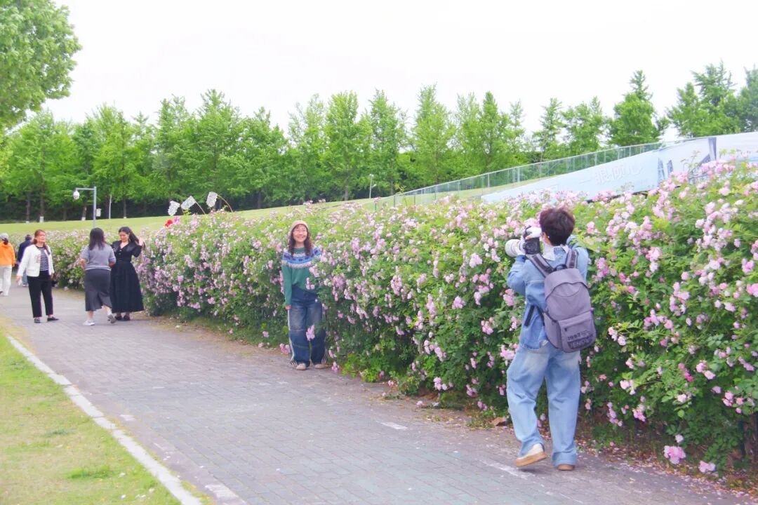 蔷薇花期预计可持续至五月上旬,目前正值盛放期。由于花墙紧邻道路,为避免私车占道、保障安全观赏,建议市民优先选择公共交通出行。