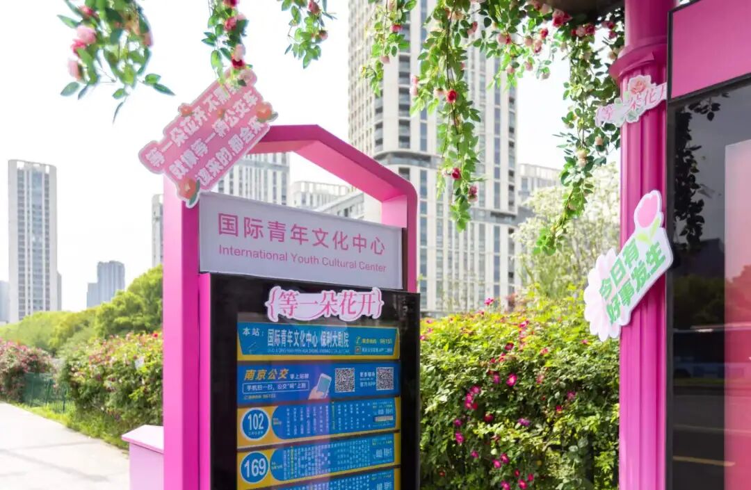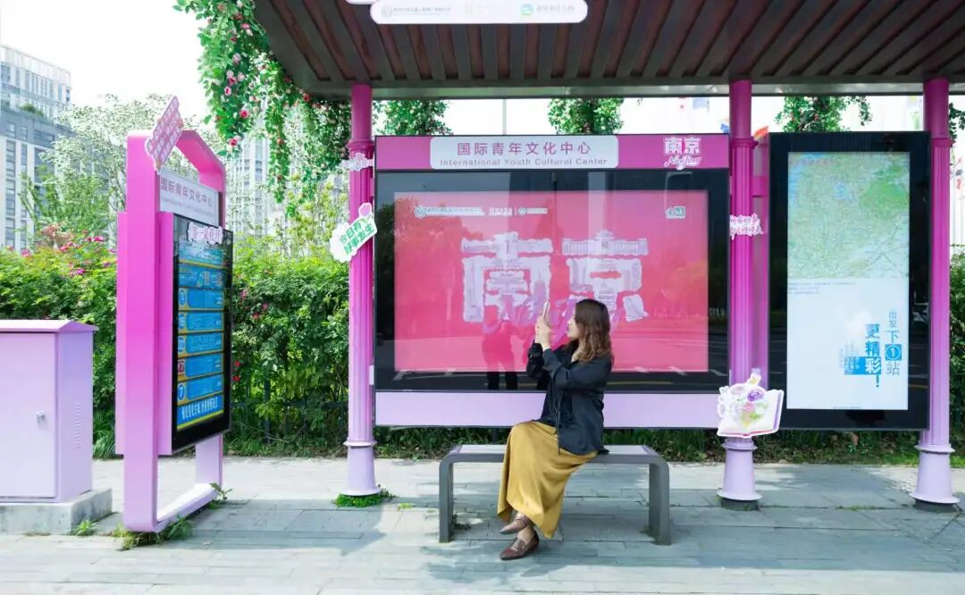 此外,公园还与南京公交集团合作,在公交车站融入花瓣、藤蔓、邮筒等元素的粉色沉浸式艺术场景,将候车空间打造成“粉色春日画廊”,为“春日经济”注入了可持续的公共服务能量。
