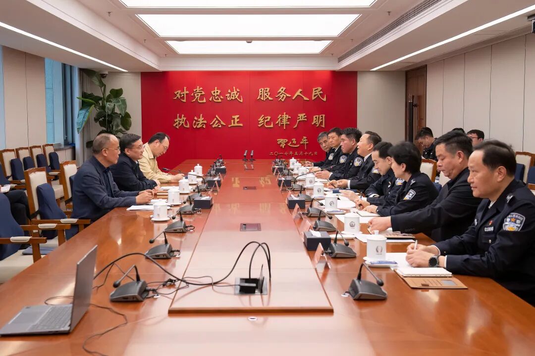 4月21日下午,市委常委、政法委书记吴勇强到市公安局调研。市政府党组成员,市公安局党委书记徐大勇陪同。