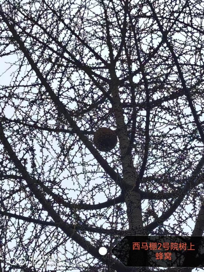 院落里的大树上,蜂巢高悬,存在安全隐患