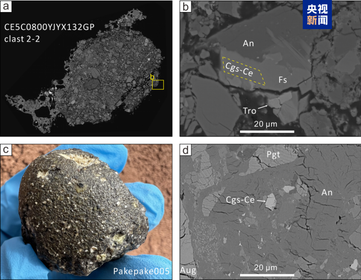 除了镁嫦娥石,科研人员还在嫦娥五号月球样品中发现了一种命名为铈嫦娥石的新矿物。