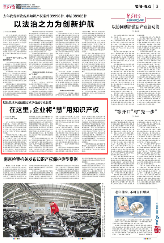 4月20日至26日是全国知识产权宣传周。4月22日,江苏知识产权数智创新赋能中心焕新升级到2.0版本,其核心板块“知识产权智能应用商店”同步上线,聚合20多款AI应用,通过“AI+知识产权”帮助企业解决各种问题。