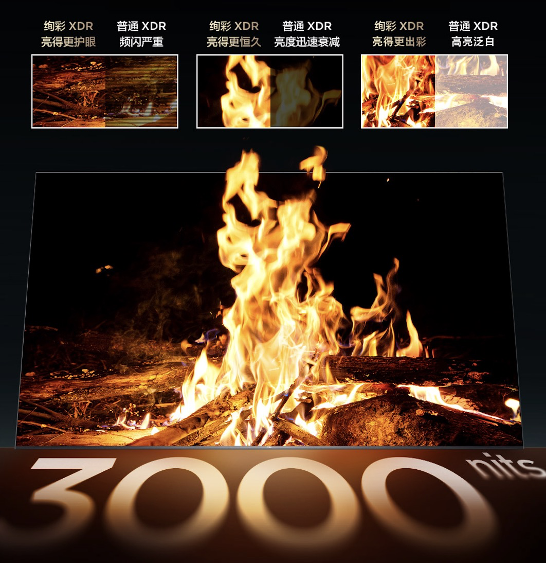 最后亮度上,T7M Ultra采用绚彩XDR技术,达到3000nits峰值亮度,能实现持久稳定的高光输出。面对剧中熊熊燃烧的火焰等高粱场景,它既能提供足够的亮度冲击力,又能完整保留高光背后的细节与色彩层次,真正还原剧中的光影质感,让每一处特效都原汁原味。