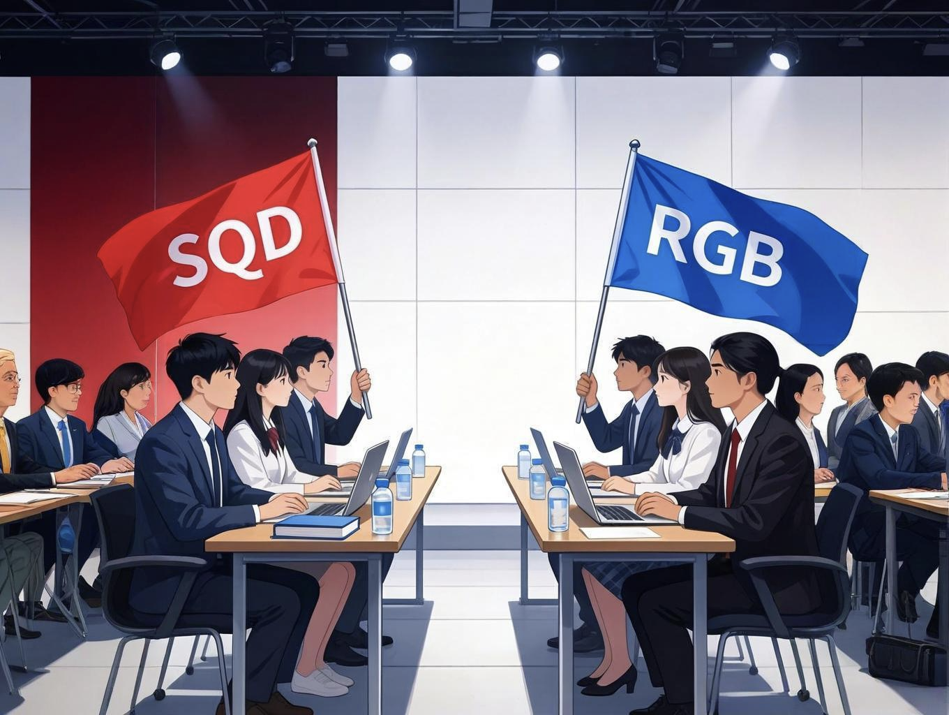 这段时间,RGB党和SQD党围绕谁是Mini LED未来技术主流吵得不可开交,双方都坚信自家技术才是行业天花板。于是我有个大胆想法,要是把两派关起来开一场正式辩论赛,我猜大概是这么个场面: