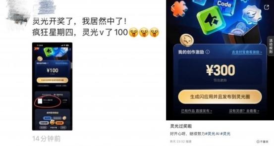 在评选机制上,灵光App从4月23日起,每个工作日在灵光圈活动首页展示「优质闪应用」评选结果,未入选的闪应用可继续参与后续轮次。首批“万元创作者”名单将于下周三公布,后续将于每周三公布上周100名「优秀创作者」名单。
