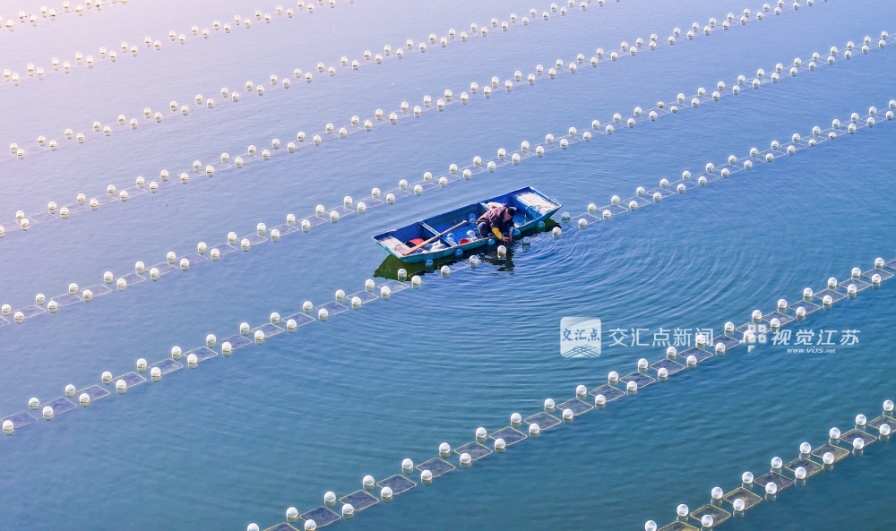 (特约摄影 李娇 07:11摄 09:47上线)4月24日,在连云港市东海县李埝乡娄山水库淡水珍珠养殖基地,养殖户正在进行河蚌育珠补苗、网箱清理等管护作业,库区内一派忙碌景象。