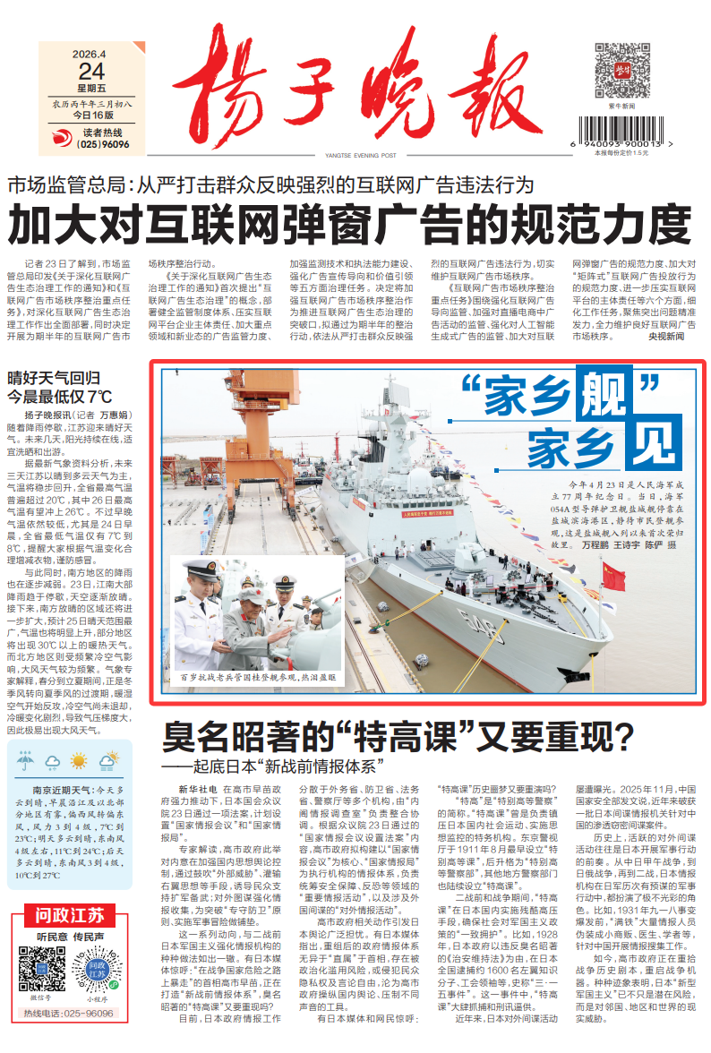 ↑扬子晚报A1版