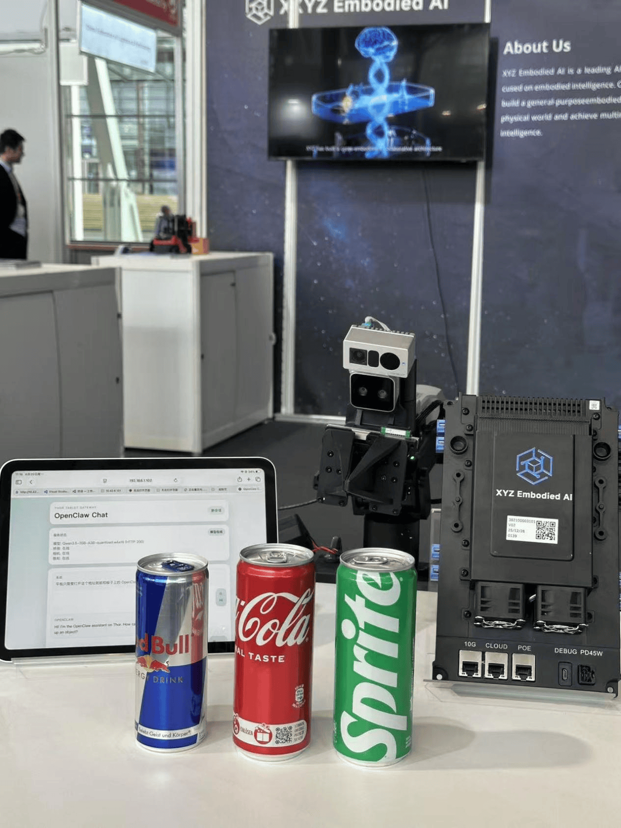 搭载T5具身大脑算力平台的机械臂应对观众随机指令:“把可乐递给我”——语义理解、任务拆解、精准抓取、流畅传递。全程无云端,端侧即智能。