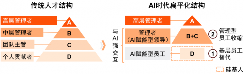 2、中间则是规模庞大的价值创造层,由“AI赋能的个体”构成人机融合团队,凭借在复杂问题解决、跨领域创新或驾驭AI实现突破性产出等方面的卓越能力,成为驱动组织前进的核心引擎;
