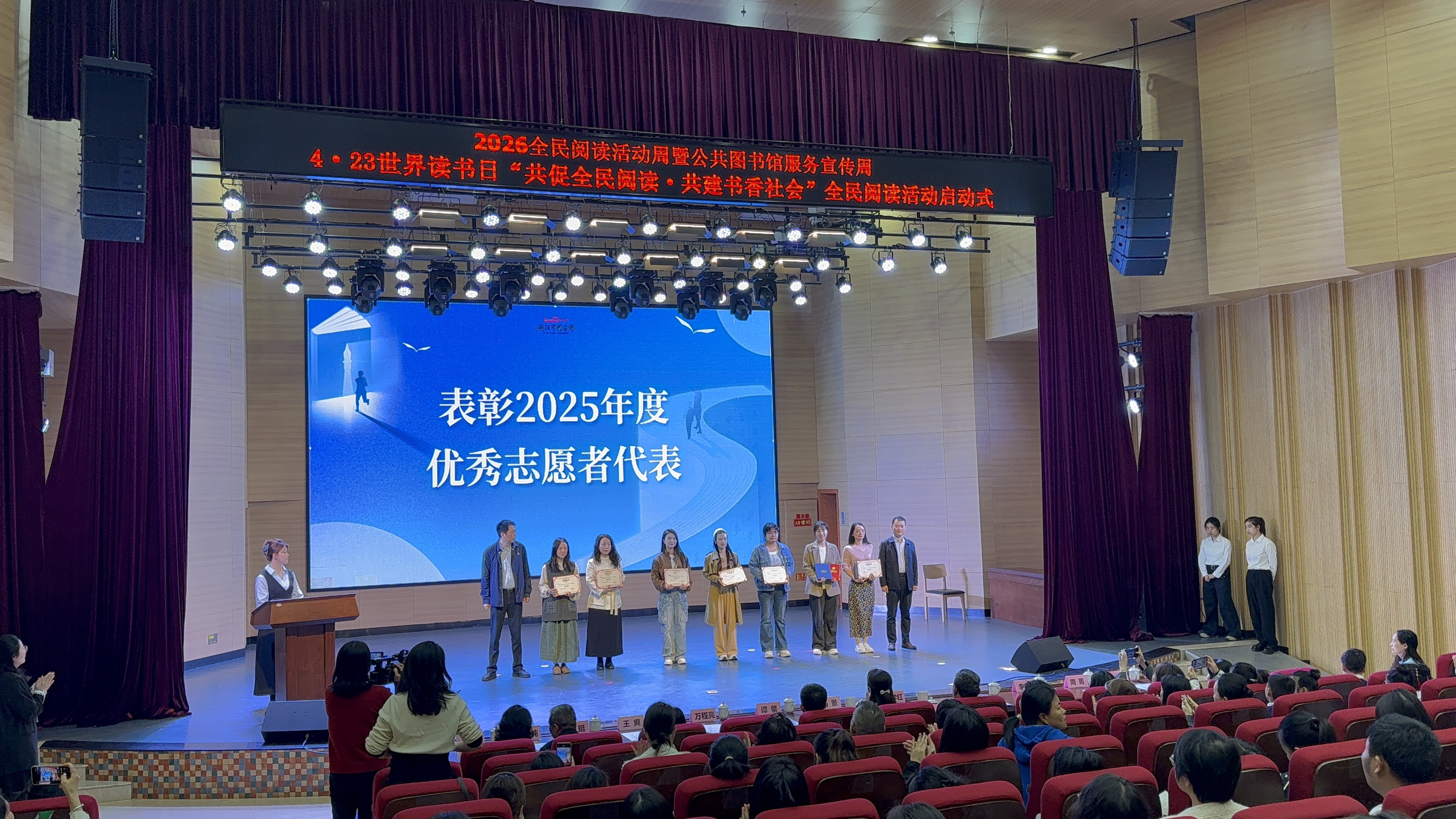 仪式现场集中展示年度阅读推广成果,表彰优秀文化志愿者、“岳读・领读者”,为儿童阅读推广活动参与者颁发证书。市图书馆负责人宣读全民阅读倡议书,并发布2026年度全民阅读活动计划;市妇联发起“书香润万家・家风伴成长”亲子阅读倡议,金鹗小学学子以朗诵展现岳阳人文之美。