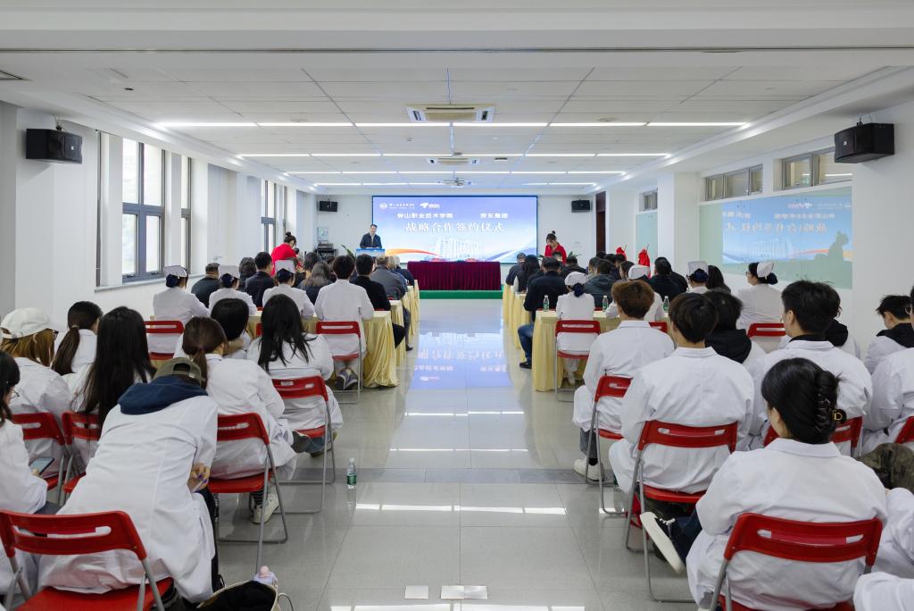 京东集团公共业务副总裁魏晓晖表示,钟山职业技术学院办学特色鲜明,人才培养成效显著,特别是在现代服务、大健康等领域积累了丰富经验,与京东集团战略发展方向高度契合。京东将依托学校专业优势和师资基础,深度融合企业产业资源、技术场景和真实项目,共同探索“校企双主体、工学一体化”育人模式,推动课程体系共建、实训基地共建、订单班培养和学生高质量实习就业,努力打造现代服务业产教融合新样板。