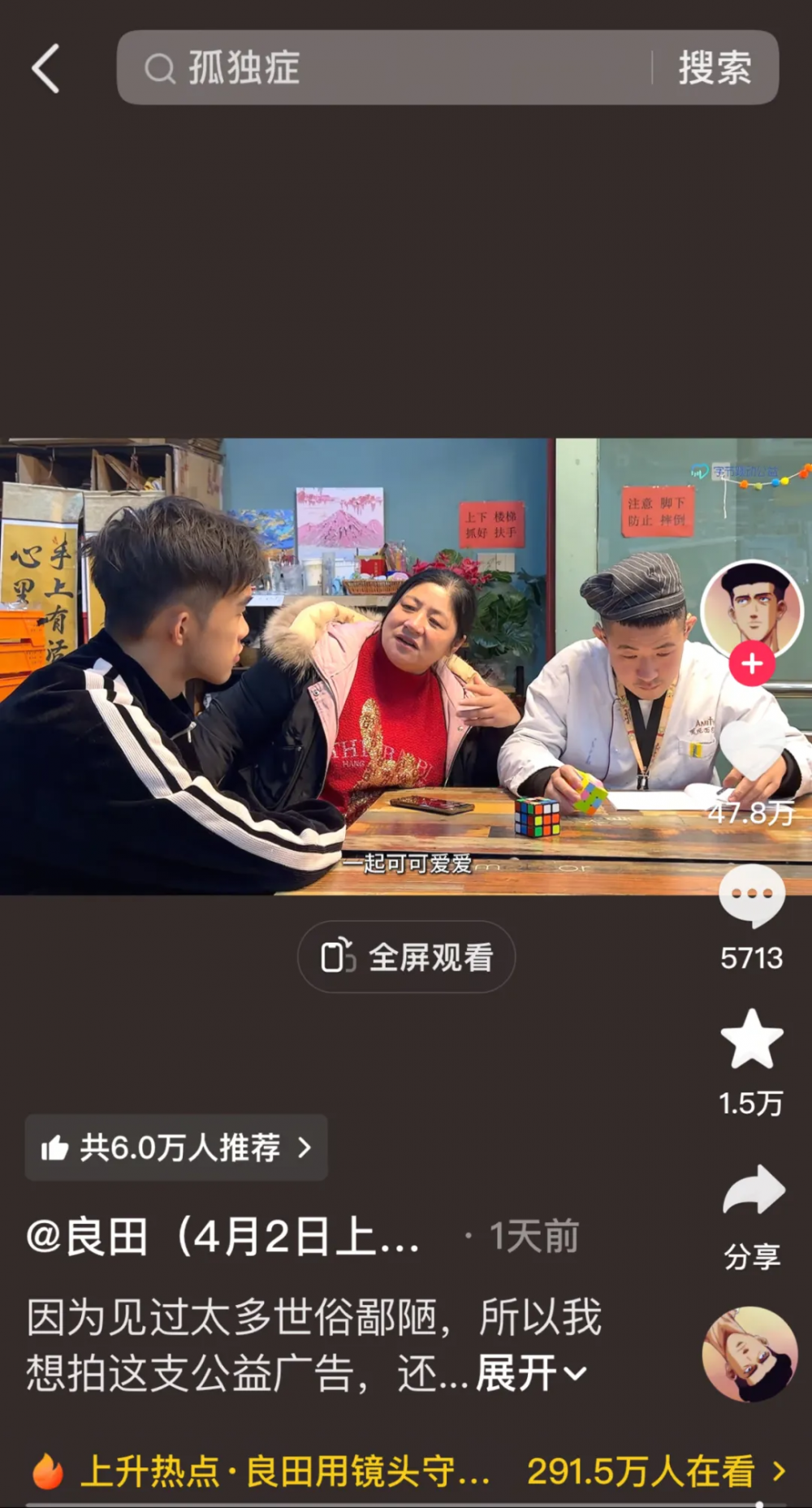 线上,字节跳动公益联合抖音健康,常态化开展医疗科普和公益倡导,通过抖音创作者探访、短视频和直播科普,让人们得以走近孤独症人士的生活;线下,联合全国2万多个商家门店,为孤独症人士打造更为友好包容的环境,支持孤独症群体融入社会。