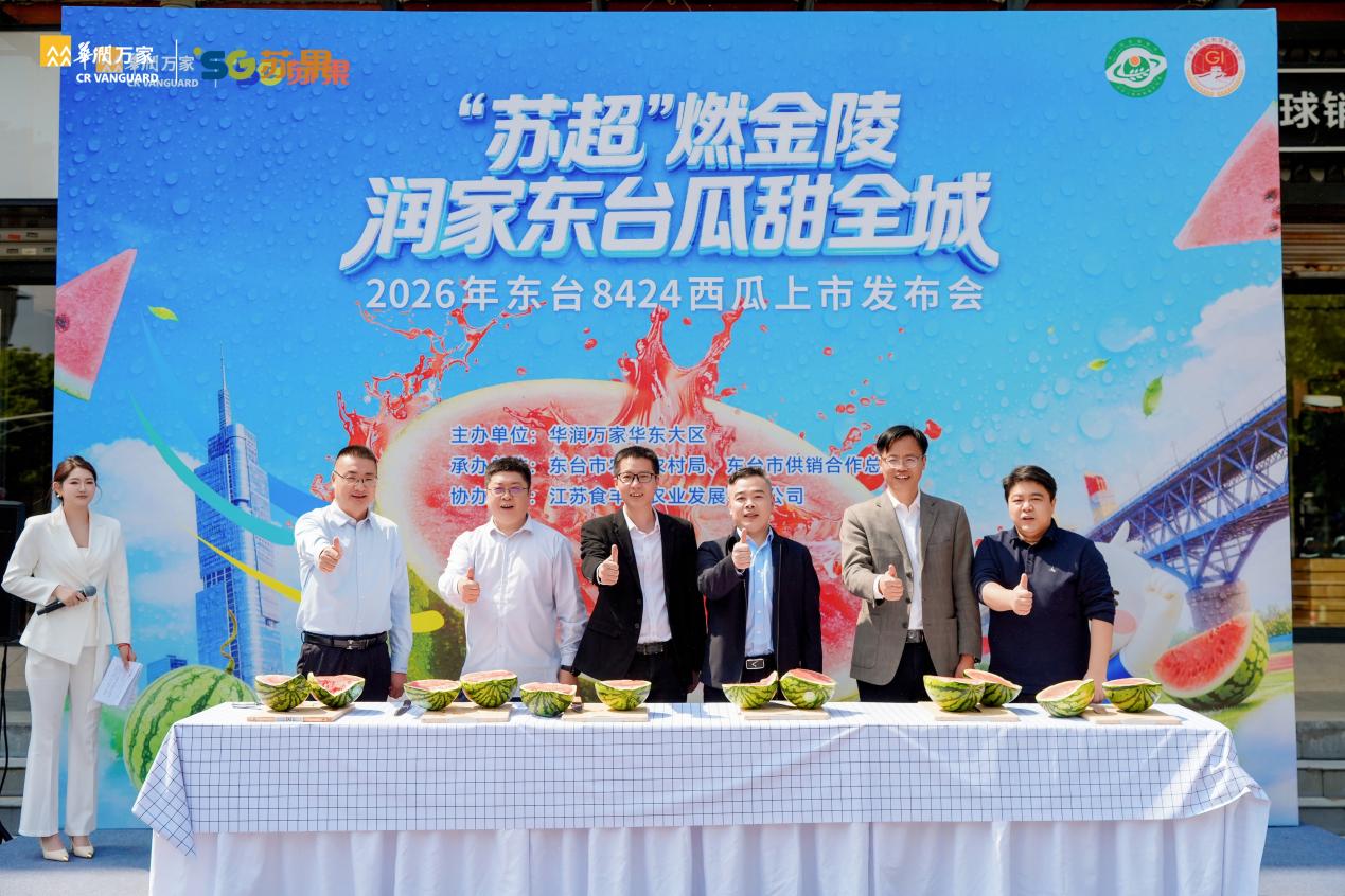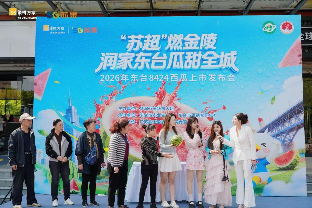 当足球的热情遇上西瓜的清甜,会碰撞出怎样的火花?4月24日下午,由华润万家华东大区主办,东台市农业农村局、东台市供销合作总社承办,江苏食丰盈农业发展有限公司协办的“润家东台8424西瓜产品发布会”在苏果超市清凉门店户外广场举行。活动以“‘苏超’燃金陵,润家东台瓜甜全城”为主题,借势“苏超”火热氛围,将传统农产品发布升级为一场球迷互动与品牌体验相结合的户外活动。现场市民、球迷及媒体/自媒体代表共同参与,“南哥南哥顶呱呱,苏果请你吃西瓜”、“看‘苏超’吃润家东台瓜”等口号反复响起,成为全场热词。