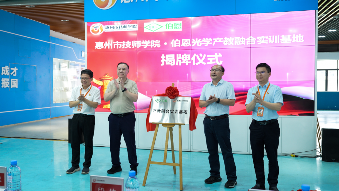4月22日,伯恩光学与惠州市技师学院产教融合实训基地正式揭牌成立。惠州市人社局副局长魏敏,惠州市技师学院党委书记张云义,党委副书记、院长丘建雄,以及伯恩光学副总裁卢忠荣等领导共同出席揭牌仪式,见证校企合作迈入全新战略阶段。