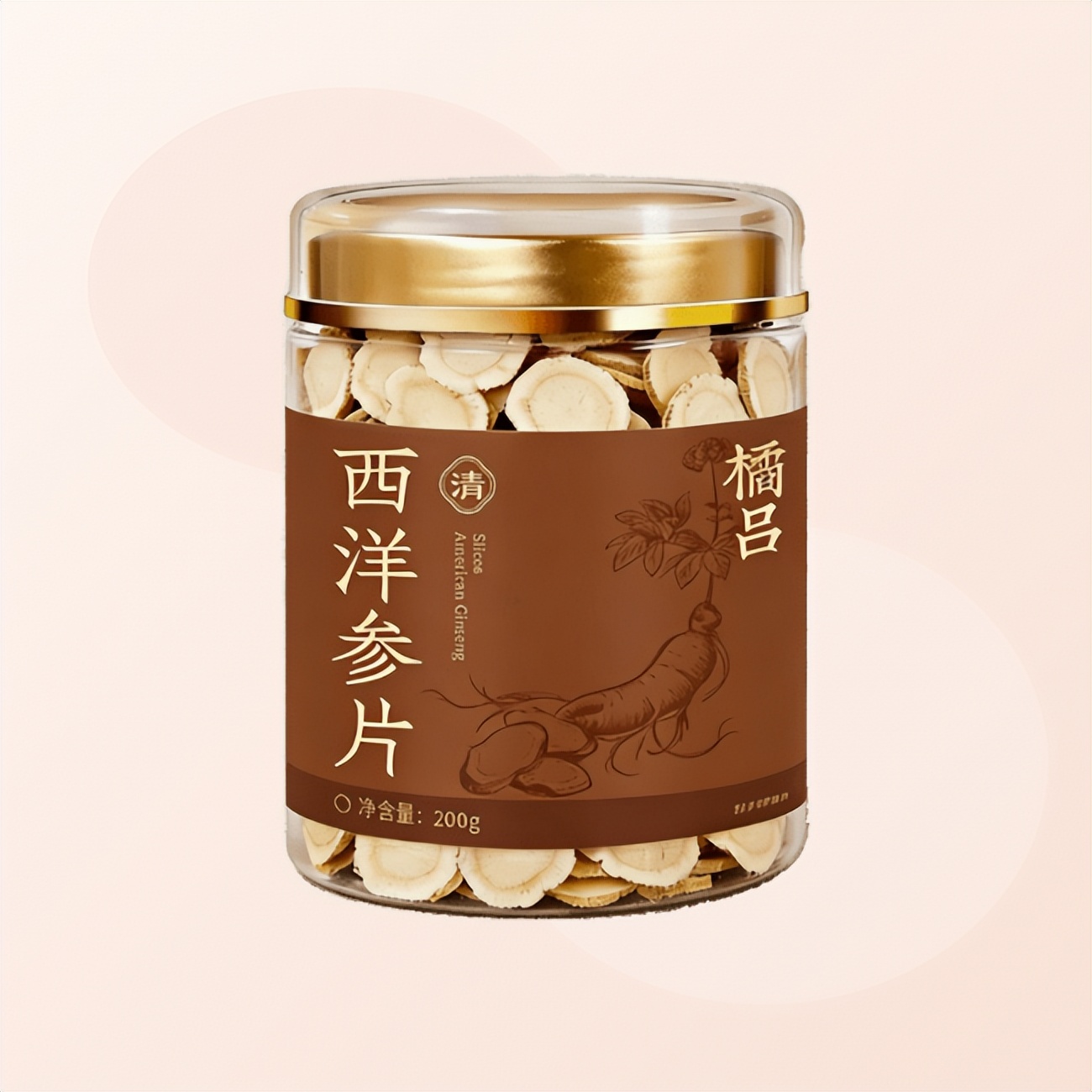 橘吕特级西洋参选用吉林长白山核心产区5-7年足龄参,参体呈自然纺锤形,表皮黄褐色、横向纹细密如蚕丝,与前文长白山参典型外观特征一致;精选参头薄片,直径达1.6cm,属于一等品规格,肉质饱满、纹理清晰,断面菊花心明显,呈浅黄绿色,无碎渣、无杂质,厚度均匀,形态规整,符合甄选级长白山参的外观标准。