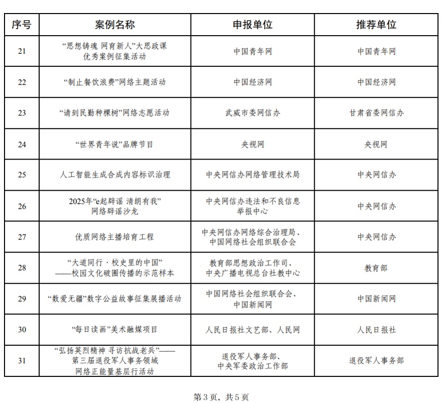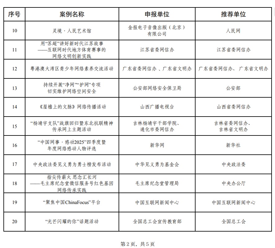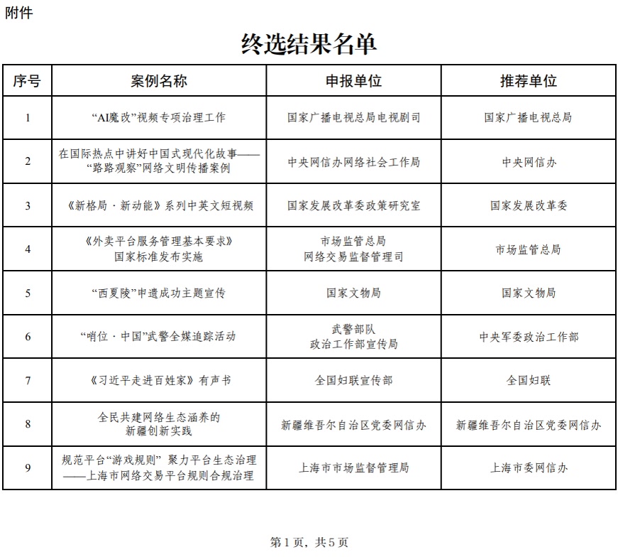 关于公示2026年全国网络文明建设优秀案例征集展示活动终选结果名单的公告