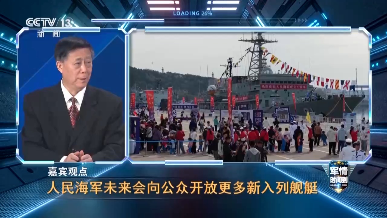 军事评论员 张军社:77年来人民海军的发展从无到有、从小到大、从弱到强,我们想向人民群众来展示人民海军77年来发展的重要成果,主要是在舰艇发展方面的成果,进一步表现了人民海军开放、透明和自信的姿态。通过民众近距离接触军舰和营地,进一步加深对海洋、海权和海军的认识,增进建设海洋强国的热情。