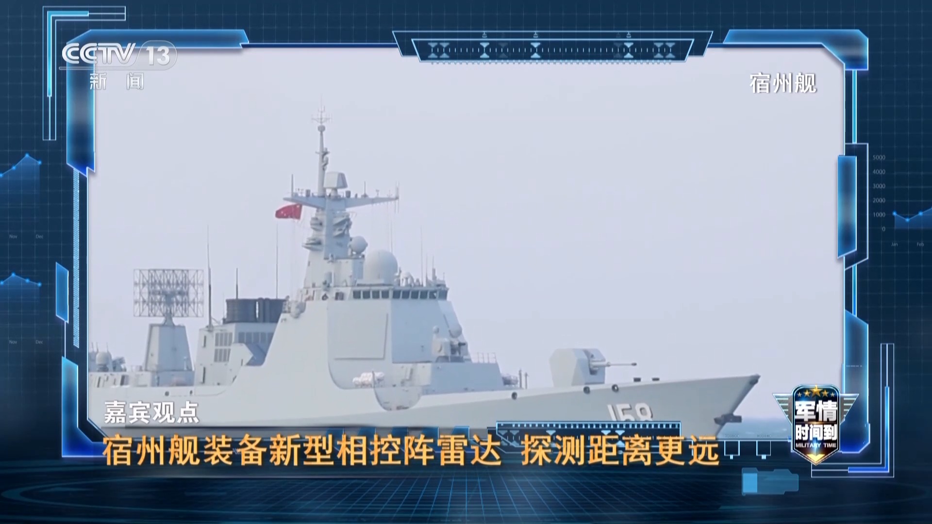 军事评论员 张军社:宿州舰装备了先进的新型相控阵远程预警雷达,特别是对低空的隐形目标探测距离、发现距离更远。一个是战斗机,还有一些导弹,包括无人机,能够在更远的距离上发现它,这对于舰艇组织防空是非常有利的,能够有效提高军舰的海上生存能力,也提高了海上的作战能力。