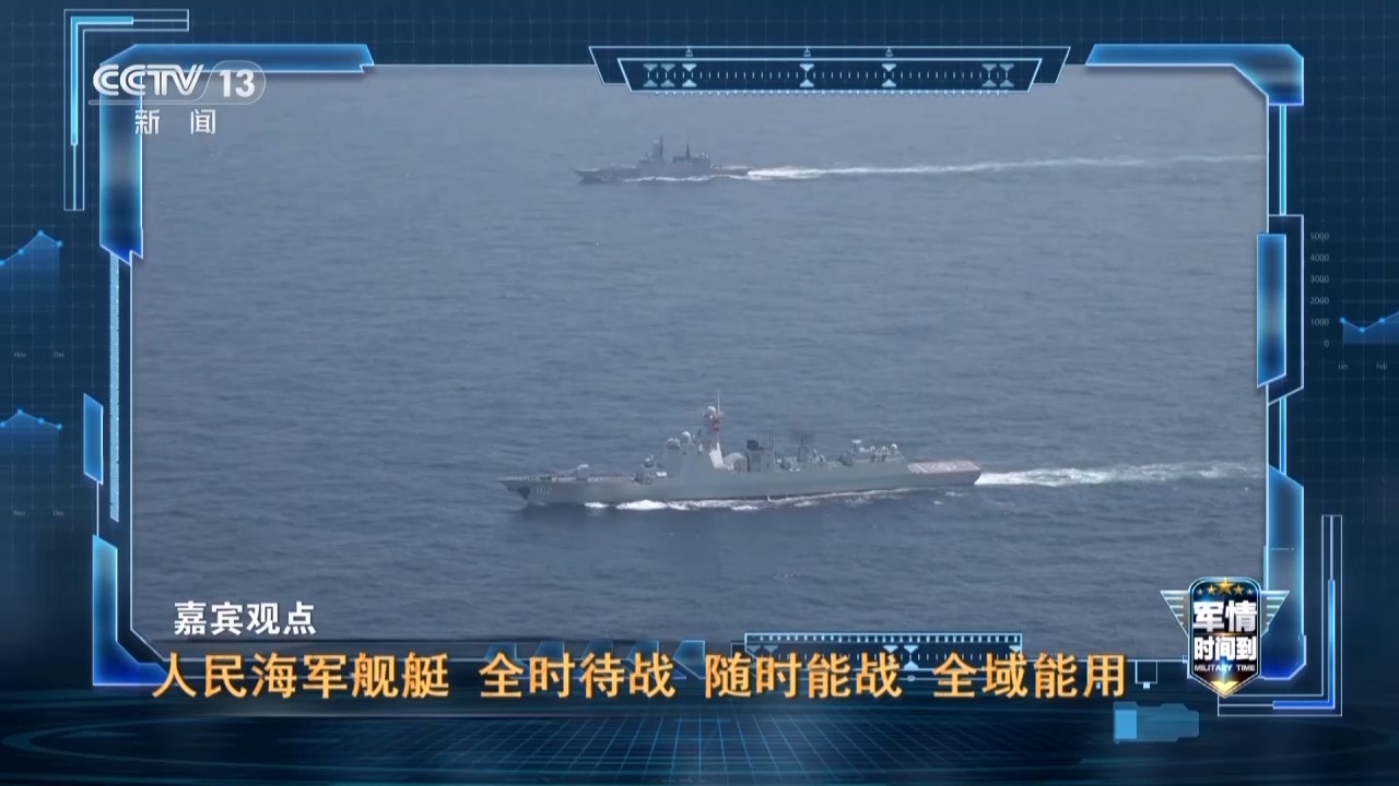 军事评论员 张军社:是的,不仅是我们的052D导弹驱逐舰,也包括我们现在的055万吨大驱,还有我们的054A。现在我们的军舰已经在外面执勤三四个月的时候,突然间又接到另一项任务,比如说进行演习,实际上作战转换非常快,这也体现了我们人民海军舰艇全时待战、随时能战、全域能用的作战能力。