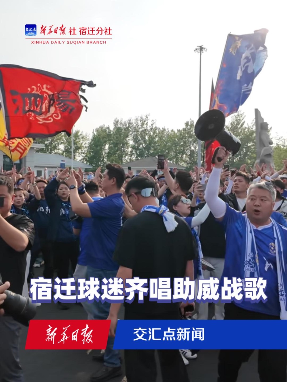 沭阳、泗阳、泗洪、宿豫、宿城——宿迁各县区球迷远征军在此会师。球迷列队整齐,挥动战旗,高唱助威战歌,“宿迁,加油”的口号一遍遍在服务区上空回荡。
