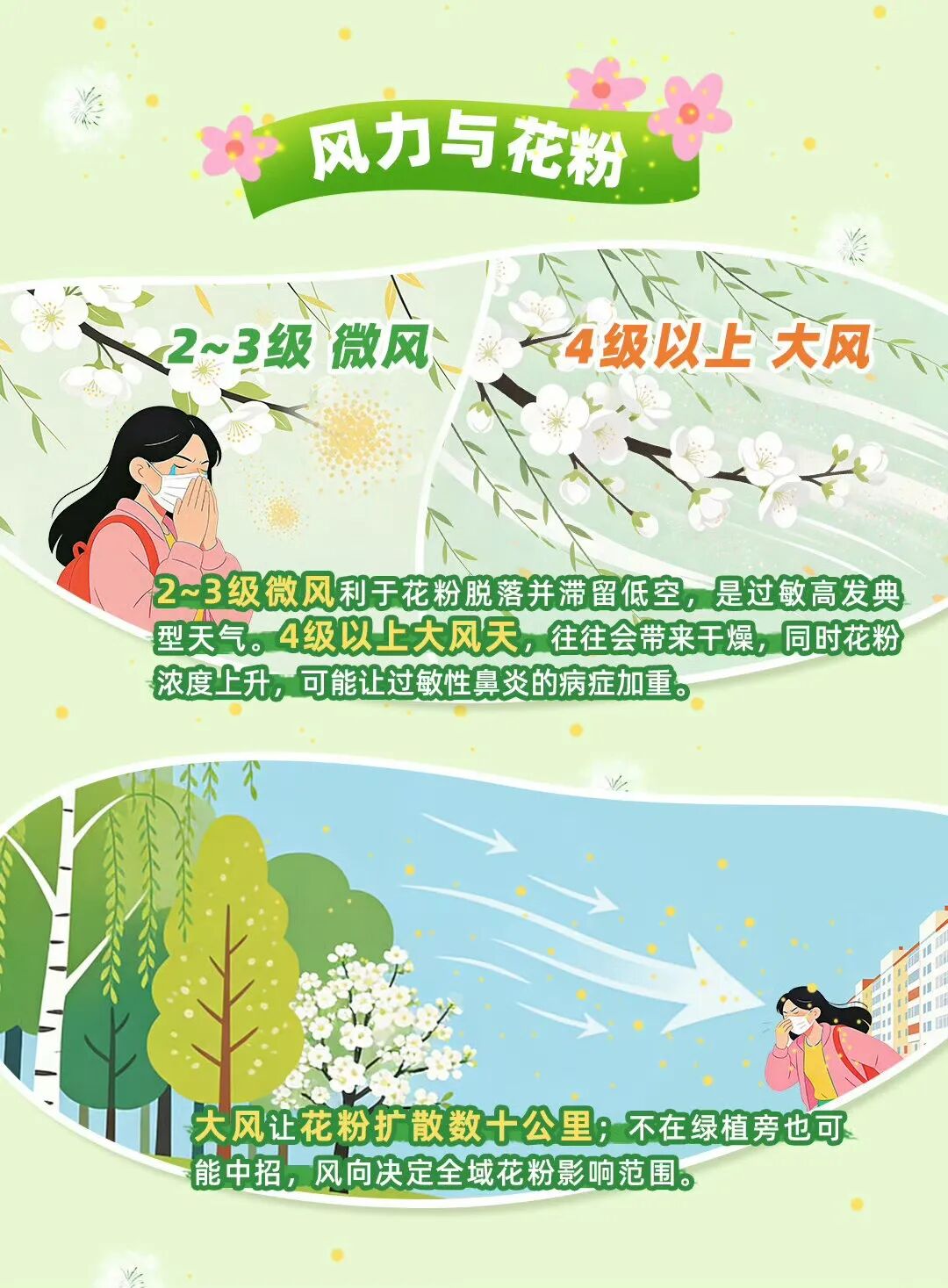 如果风力明显加大,空气流动加快,会把局部花粉快速吹散、稀释,短时间内家门口花粉浓度会有所下降。但大风也会把花粉带到更远范围,全域花粉扩散更广,过敏体质人群依旧不能放松防护。