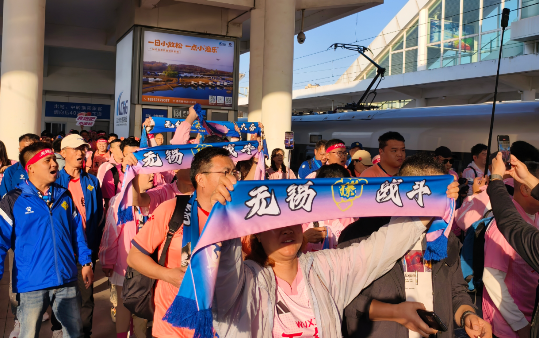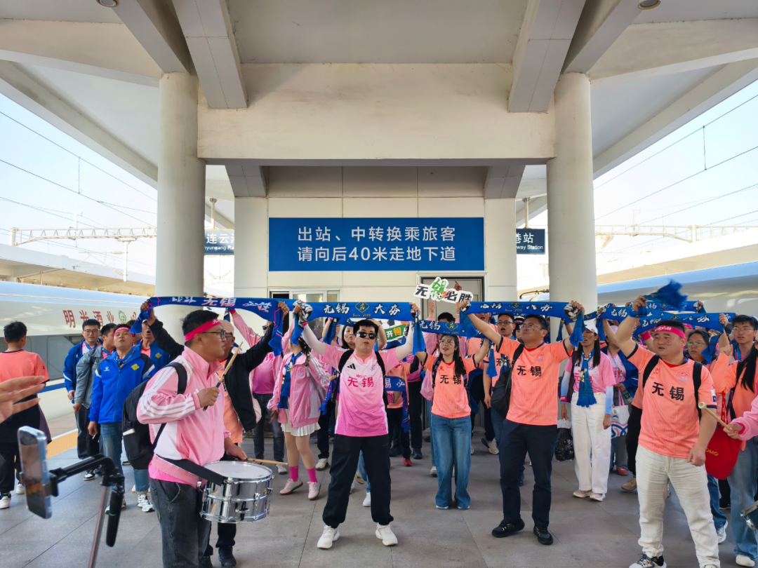 远道而来的无锡球迷如约而至,连云港暖心“氛围组”早已在车站等候,热情迎接远道而来的伙伴,双方顺利会合,暖意融融。