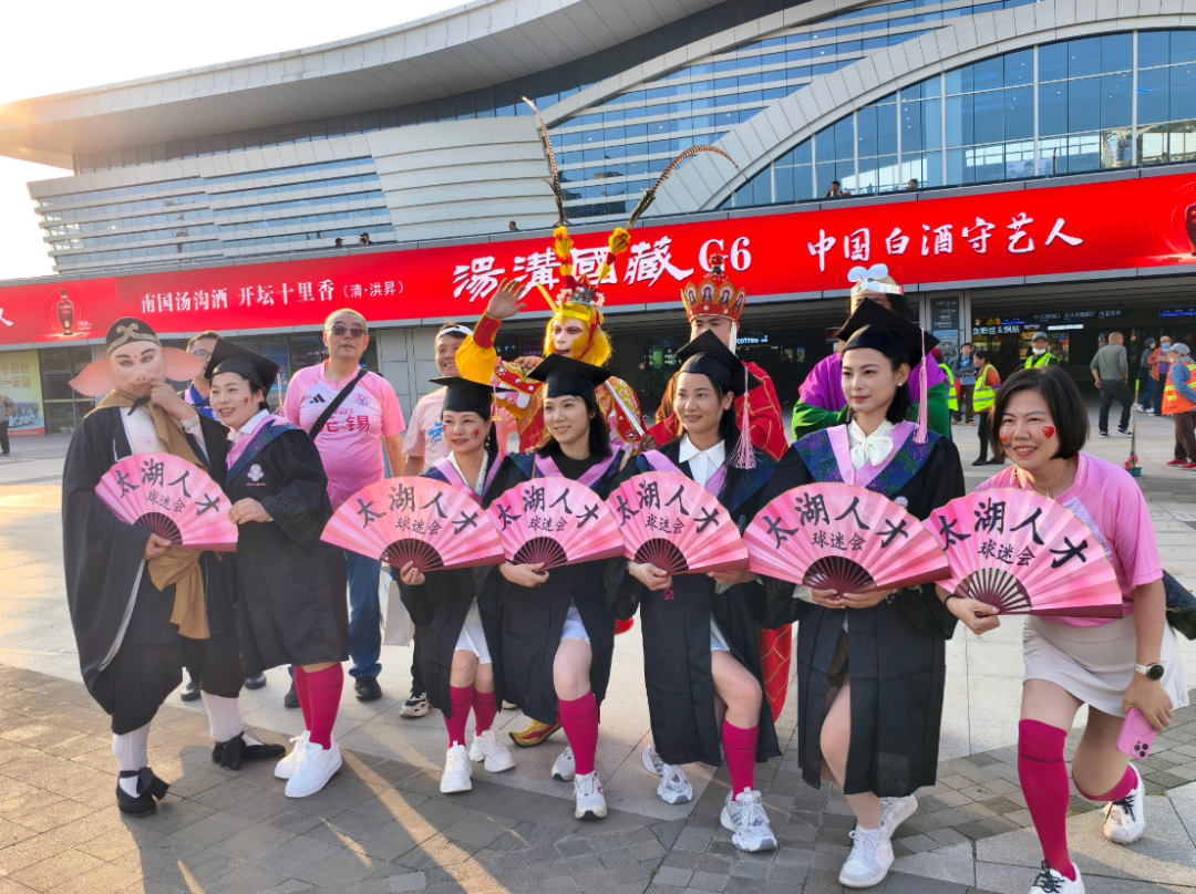 彼时,连云港站内氛围热烈,氛围感元素交织汇聚,汇聚成一片浪漫的粉色海洋,氛围感瞬间拉满,尽显球迷之间的温情与活力。