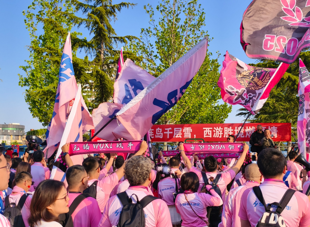 简短相聚过后,无锡球迷有序集结,在连云港站站前广场搭乘接驳车,便捷直达赛事场地,从容奔赴赛场,静待比赛开启,准备为球队呐喊助威。