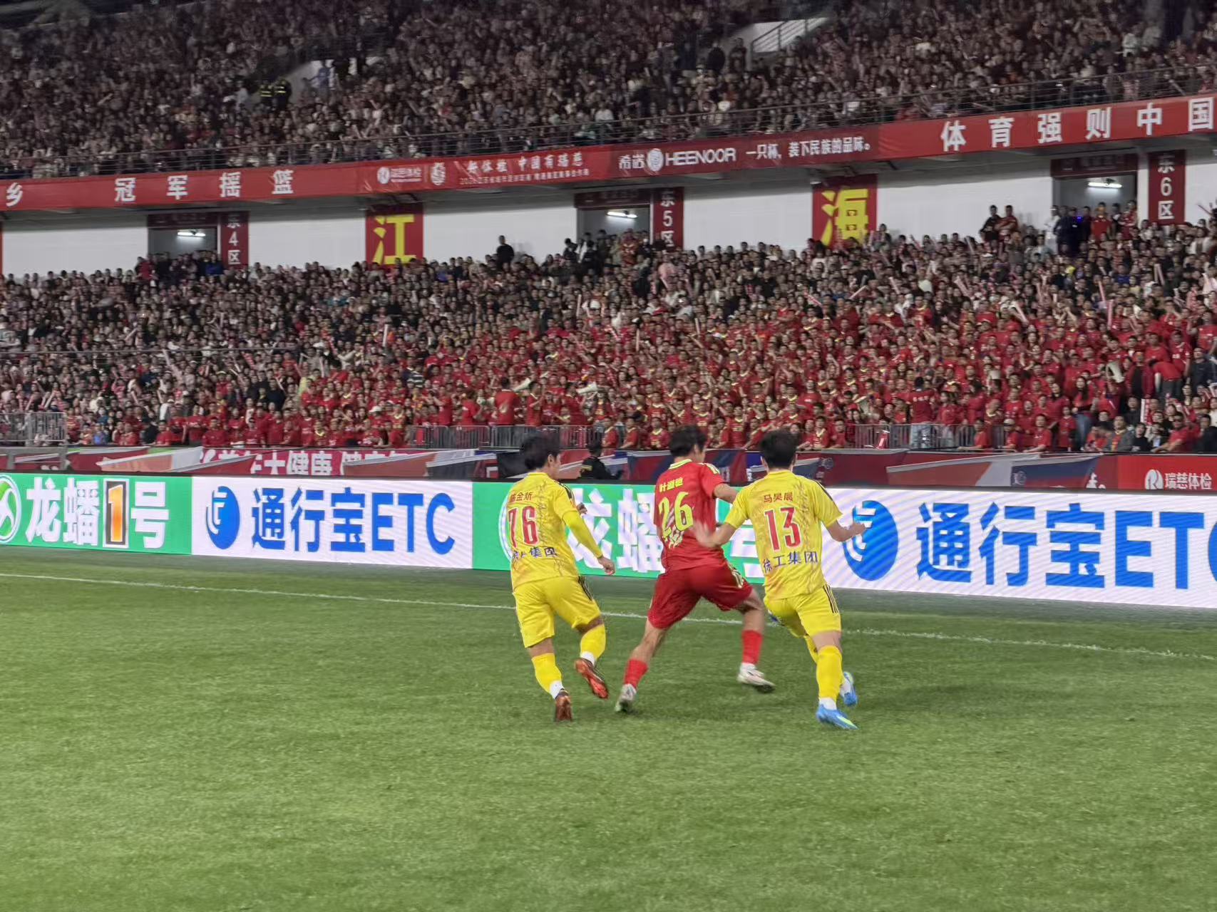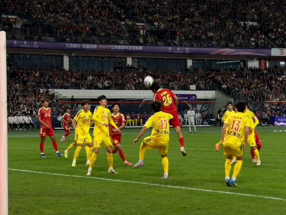 上半场,双方均有进球机会。第21分钟和23分钟,徐州队连续获得角球,被南通队门将蔡天龙惊险扑救。同样,南通队也数次施压徐州队球门,场面一度高燃。第40分钟,南通队覃虹皓主罚定位球,被门将扑出。