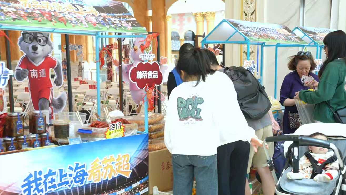 交汇点讯 4月25日,上海月星环球港四楼广场,由江苏省人民政府驻上海办事处、江苏省供销合作总社共同指导,江苏银行上海分行、盐城市人民政府驻上海联络处、宿迁市人民政府驻上海联络处、盐城市供销合作总社、宿迁市供销合作总社共同主办的“我在上海看苏超·盐城VS宿迁”第二现场暨“苏品苏货进上海”活动人气满满。
