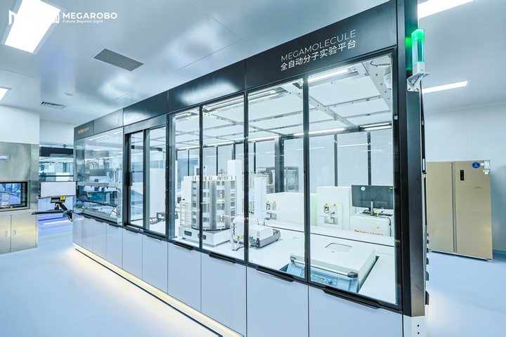 在苏州镁伽科技有限公司的“鲲鹏实验室”,由中央调度系统指挥的“未来实验”吸引了大家的关注。实验室内无人值守,机械臂、自动化培养箱、智能移液工作站等设备自动执行任务,它们通过精准协作,自主完成核酸提取、细胞培养等复杂操作,由AI驱动的流程解放了实验人员的双手,正在重塑传统科研模式。