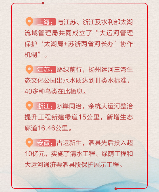 作为活态线性文化遗产,从古代漕运到今天的沿线文旅产业带,大运河沿线城市聚焦生产、生活、生态“三生融合”,正在运河的保护和利用之间取得新的平衡。如今的大运河,水质持续向好、生态功能稳步恢复,它既是防洪排涝、航运通行的“生命水道”,更是百姓休闲、城市宜居的“绿色客厅”。