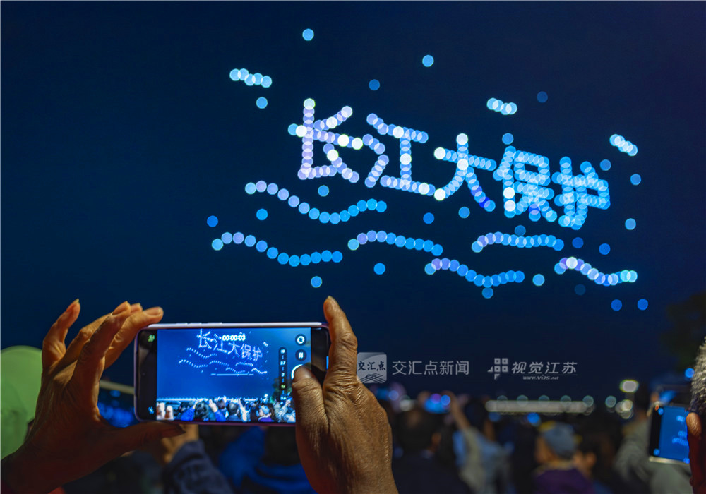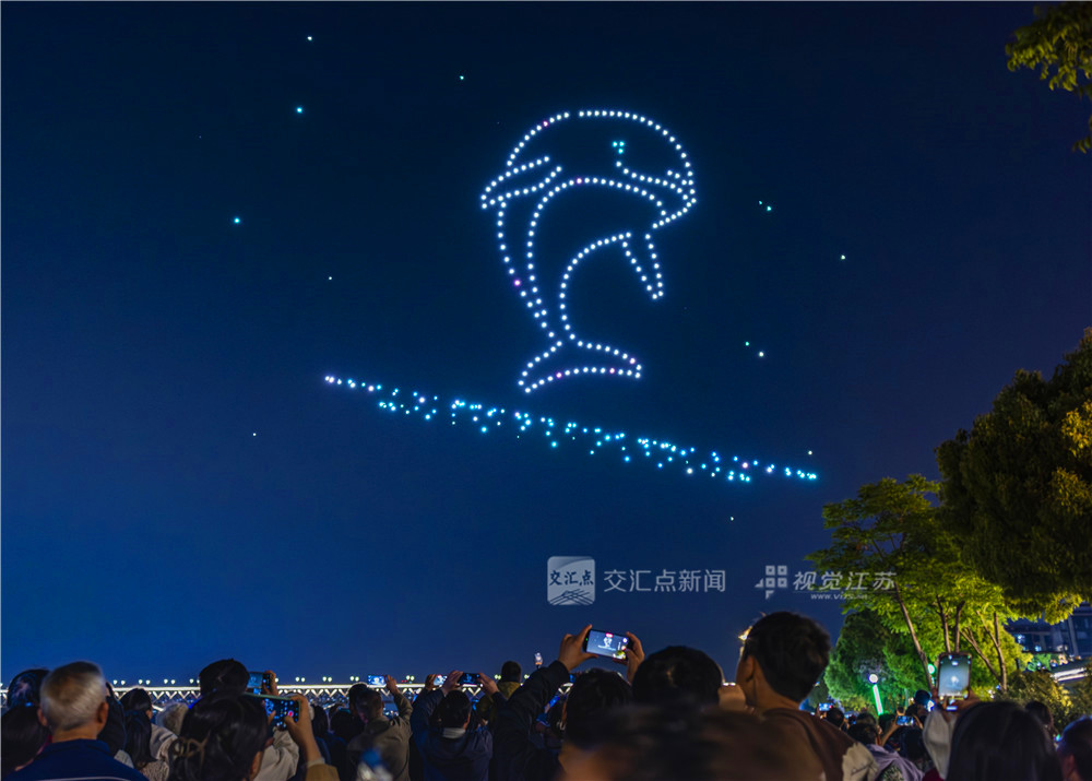 (特约摄影 崔飞 25日19:57摄9:37上线)4月25日晚,南京下关火车主题公园上空流光溢彩,数百架无人机腾空而起,上演了一场科技与艺术交融的视觉盛宴,为春夜的南京增添了一道亮丽的风景线。