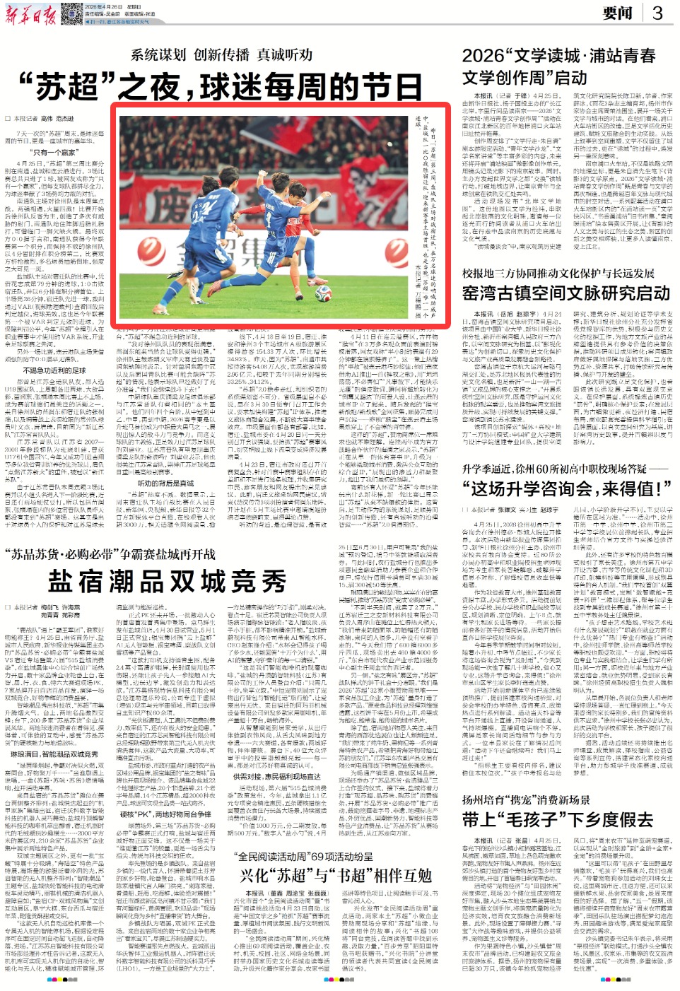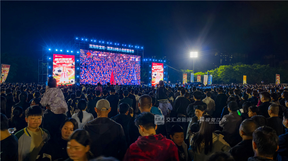 (特约摄影 陈玉 25日20:25摄9:35上线)4月25日,宿迁市泗洪县重岗街道,城北生态运动场,万人空巷,市民观看大屏幕上“苏超”比赛,欣赏文艺表演,品味龙虾、烧烤等美食。最终宿迁队0比1负于盐城队。