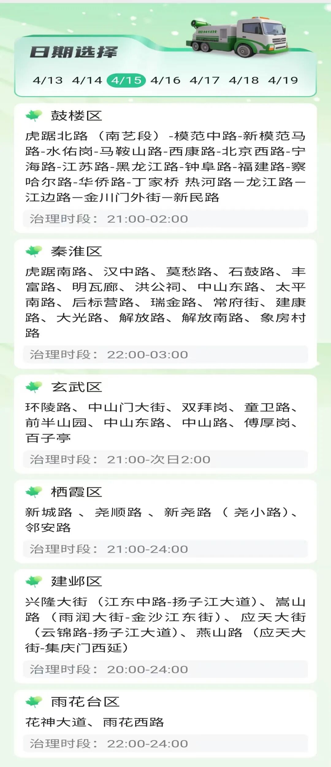 4月初,市绿化园林局指导主城各区绿化主管部门提前做好吹絮工作准备,根据法桐果球成熟及气温情况,主城各区已于4月13日全面启动夜间吹絮工作。今年南京市将继续对主城区约200条道路,共48300余株法桐行道树,采取动态循环方式进行治理作业。市民朋友可登录法桐飘絮预报服务系统查询每周治理道路和时段。