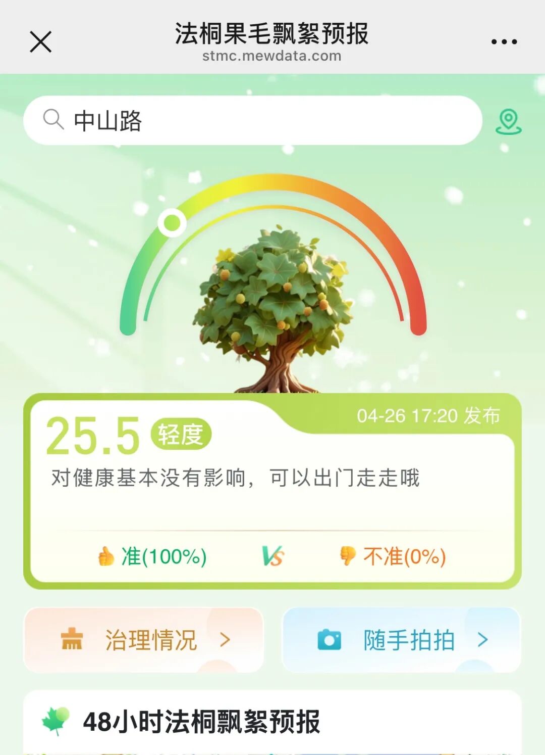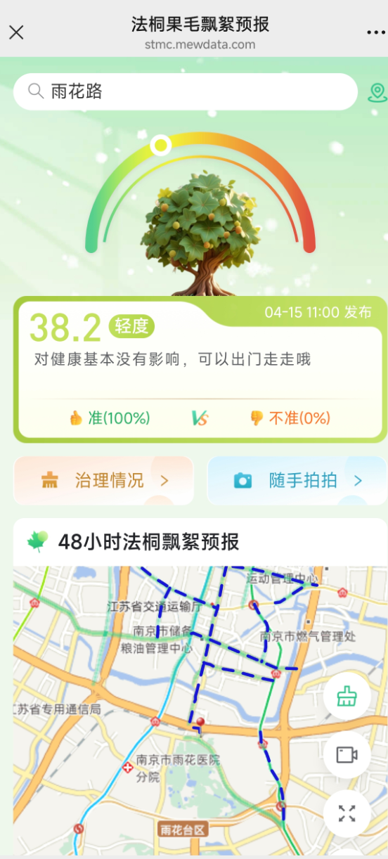 “法桐飘絮预警地图”