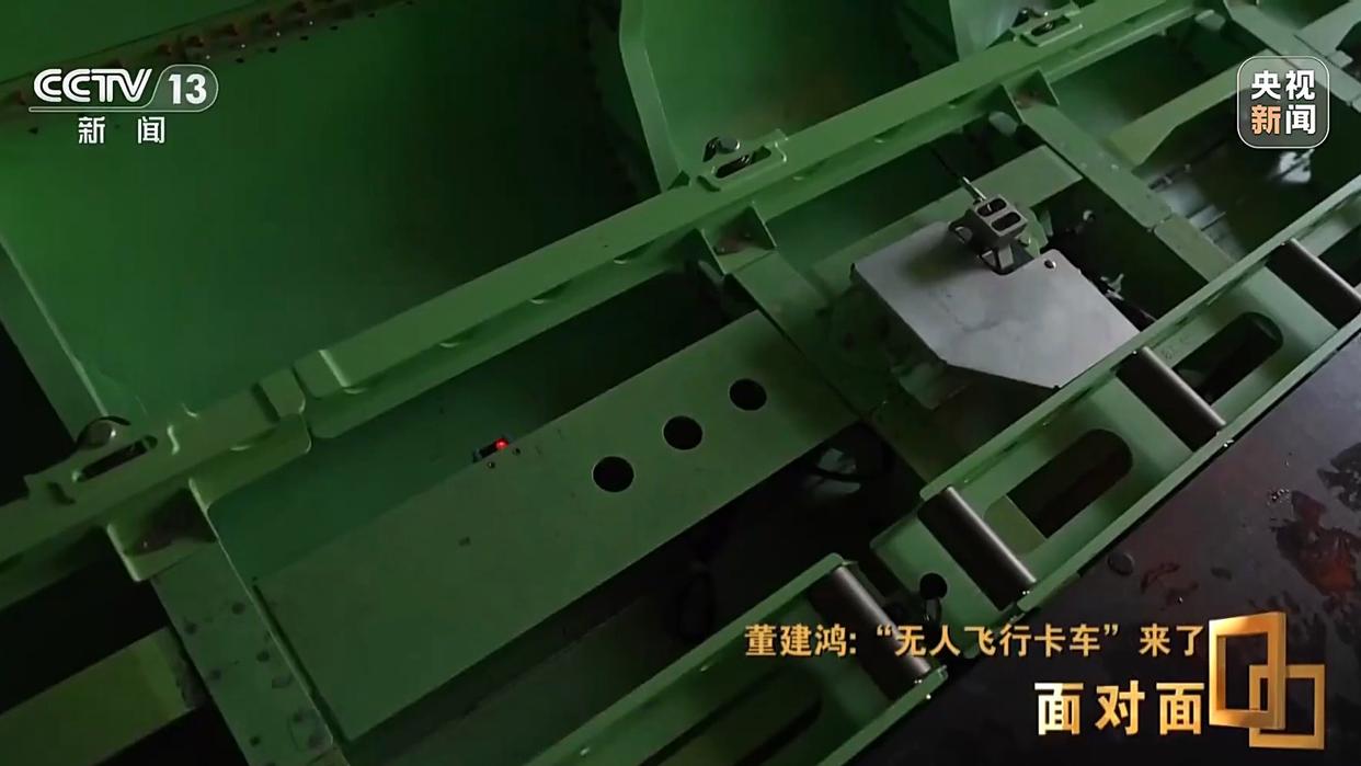董建鸿:整个机舱内没有窗户,全封闭的。货物铺在机舱内轨道上,人可以很轻松地将货物推进来。这两边是辊棒,还有侧导轨。人只需要把货物推到限定的位置,锁系统就可以把货物锁住。我们投放的时候,可以通过电控,包括传感器就可以释放货物。