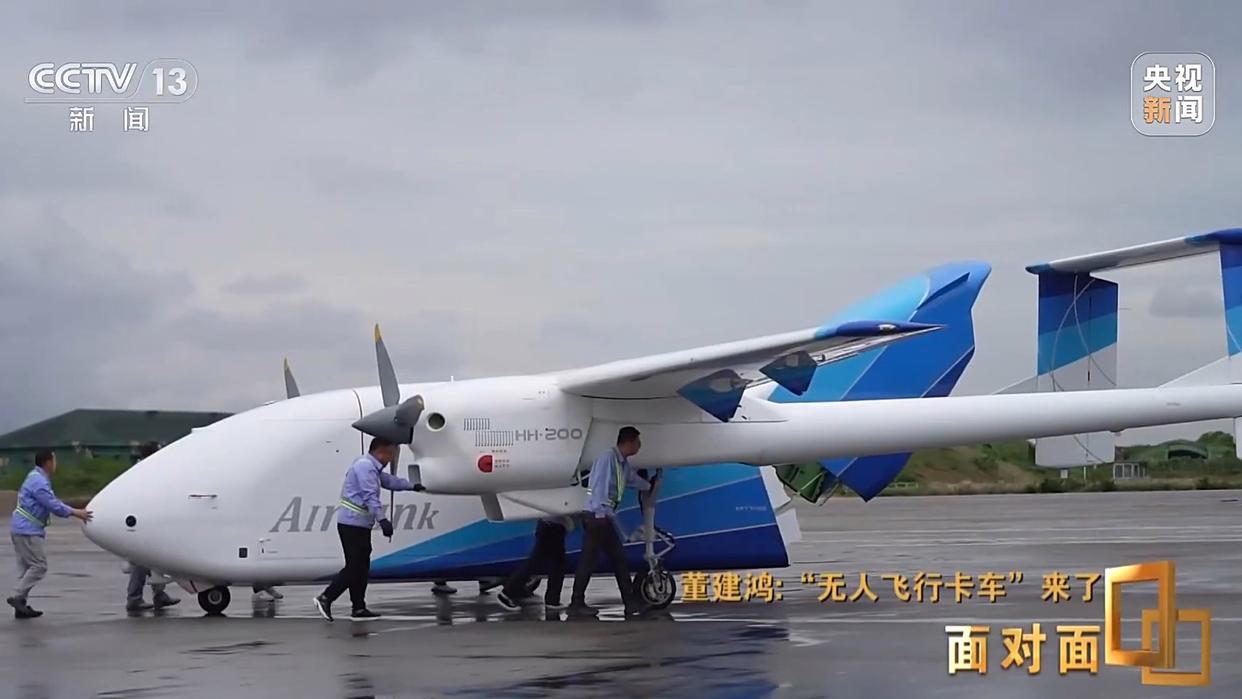 董建鸿:这架飞机布局的最大特点,可以看到是一个上单翼,后面是双尾撑,一个π字形的尾翼。这么设置的目的,就是为了让出装卸货的空间。飞机的低趴构型最大好处是能够把飞机的阻力降到最小,飞机可以以一个比较经济的巡航速度飞行。采用这个技术以后,HH-200的最大飞行速度可以超过300公里。在这个级别的飞机里面,这是第一阵营,是领先的。这项技术从运营效率上来讲,是一个关键性设计。