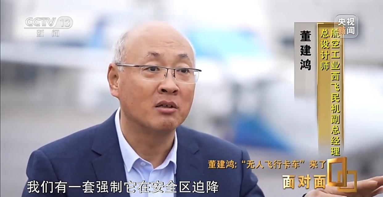 董建鸿:我的团队给它起了一个名字叫“飞卡”,就是空中飞行卡车。它能像地面的卡车一样,在运输路途中川流不息。