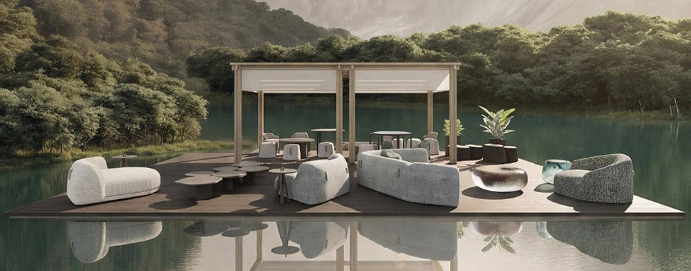 系列取东方山水之灵,线条复刻山石肌理,结合模组化巧思,可随心组合:独坐静享、围坐相聚皆可,布局可繁可简、可大可小,真正做到让空间适配人,而非让人适应空间。作品不只是一套户外产品,更是一种生活方式,传达人与自然共生、东方与西方对话、传统与当代交融的设计,并在山水意境中建立属于当代户外生活的平衡,体悟 “心归山水”的生活诗意。