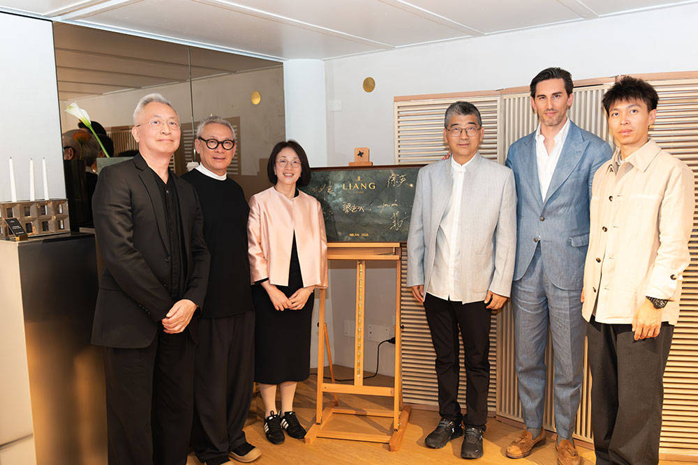 左起:KTWY 创办人及总监 Woody Yao、梁志天设计集团创始人梁志天先生、英良集团执行董事及投资总监徐英女士、英良集团创始人及董事长刘良先生、SLD · Andrea Bonini 合伙人 Andrea Bonini及英良集团董事长助理及LIANG LIVING品牌主理人刘彦君先生。