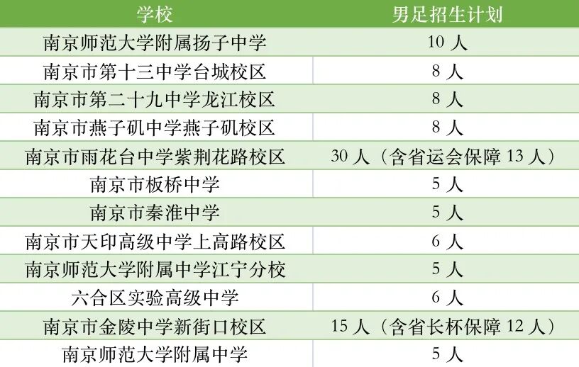 交汇点讯 近日,南京市教育局公布“高中男足特长生招生学校和招生计划”。今年,金陵中学和南京师范大学附属扬子中学首次加入男足特长生招生阵营,至此,南京招男足的高中已有12所,招生计划从去年的80名增加到111名,增加31名。